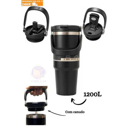 Isolamento Térmico de Alta Performance: Sua parede dupla em aço inoxidável mantém a temperatura da sua bebida por até 4 horas, permitindo que você desfrute de cada gole na temperatura perfeita, sem se preocupar com o ambiente externo.